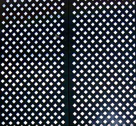エテルニット 〔透光・遮光スクリーン工法〕 私共が施工実績として数十万uあるハーパーズストロングルーフを基に有孔成型加工を施し、シートスタッドにて簡単に施工できるようにシステム化した、透光性あるいは遮光性を開口率にて自由に設定できる、屋根・壁・天井などに取り付け可能なスクリーン工法です。エテルニットの最大のキーポイントは施工後遮光スクリーンとしての役目と、透過性の良い特性が相俟って外観上で柔らかさとロマンを絶妙にハーモニーして奏えることができます。屋内外で使用可能でき、スクリーンルーバー屋根、壁面スクリーン、ディスプレイの間仕切り、柵 、天井ルーバー、落下防止ネット、設備機器の目隠しパネルなど多彩な用途に対応できます。有孔パターンは20種類以上、自由なパターンの製作にも対応いたします。〔開口率55%まで製作可能〕標準板厚は0.8oから1.2oですが、用途に応じて0.6oや2.3oも製作いたします。長さは1820〜3000o特注も相談に応じます。標準色は10色ですが特注色にも対応いたします。